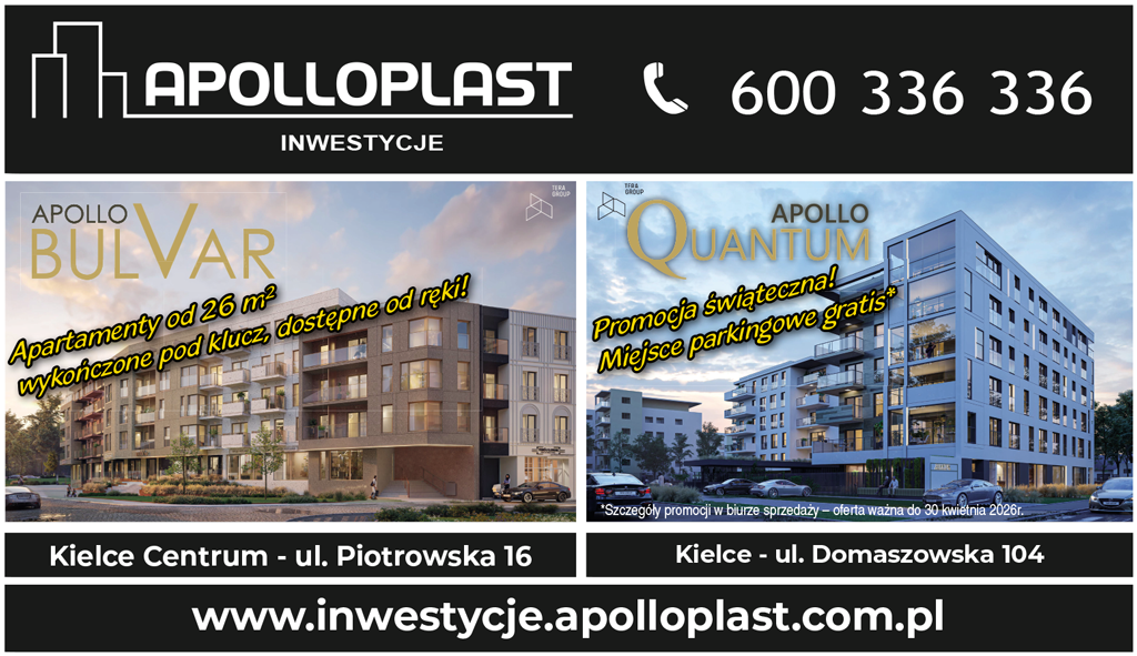 Budynek Apollo Bulvar w centrum Kielc przy ulicy Piotrkowskiej 16, to nowoczesna inwestycja, która składa się z 8 lokali usługowych oraz 87 apartamentów.Dodatkowo, budynek oferuje 21 miejsc postojowych na własność i alternatywnie 31 miejsc parkingowych na abonament